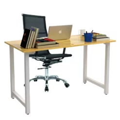 Bàn có mặt bàn được làm từ gỗ cao su xuất khẩu, dày 18mm, tẩm sấy bằng công nghệ hiện đại chống cong vênh mối mọt. Các mép bàn được bo cạnh mềm mại, giảm nguy cơ chấn thương. Bề mặt bàn được sơn PU và phủ 2K kỹ càng với màu nâu vàng tươi đẹp, có tác dụng chống thấm nước và chống trầy hiệu quả. Bộ khung chân làm từ sắt hộp 4 x 4 cm, dầy tới 1,4 ly và sơn tĩnh điện cao cấp, giúp sản phẩm sử dụng lâu bền không sợ bong tróc hay móp méo. Bốn nút tăng đơ dưới chân có tác dụng giúp bàn cân bằng, ổn định, không bị xê dịch khi sử dụng và làm trầy xước sàn nhà. Ghế văn phòng chất liệu vải lưới thoáng khí đàn hồi, dễ chăm sóc giặt giũ, giúp chống tích nhiệt, cân bằng trọng lượng cơ thể và giảm thiểu các triệu chứng nhức mỏi do phải ngồi lâu trong môi trường làm việc. Khungghế được sản xuất từ thép mạ inox cao cấp, rất chắc chắn và có tuổi thọ cao. Mép ghế được gia cố lò xo chống giãn hiệu quả, sử dụng lâu dài không sợ trùng lưới.